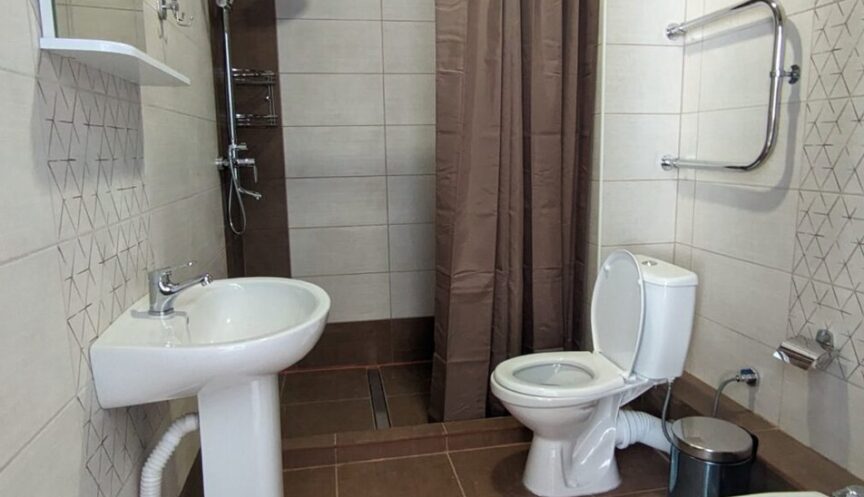 Санузел с душем и биде. Имеются туалетные принадлежности.