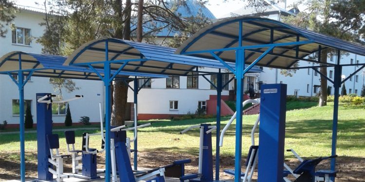На территории санатория установлен комплекс спортивных тренажеров.